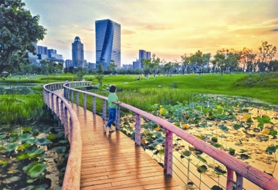 12月1日,市民在滨江公园遛狗散步,均系有狗绳,体现出文明养狗新风尚。 三峡日报全媒记者 黄余洋 摄
