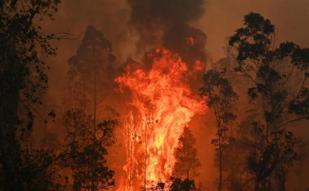 因酷暑、强风和雷电加剧,新南威尔士州和维多利亚州火势2019年12月31日向海滨蔓延,东部沿海城镇蒙受财产损失。