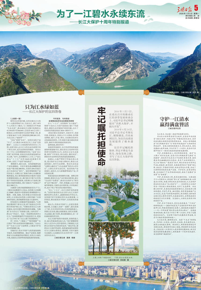 牢记嘱托,宜昌坚持一张生态蓝图绘到底,一茬接着一茬干,推动长江大保护的战略目标日益清晰,谋篇布局更为科学,绿色发展导向愈发鲜明。