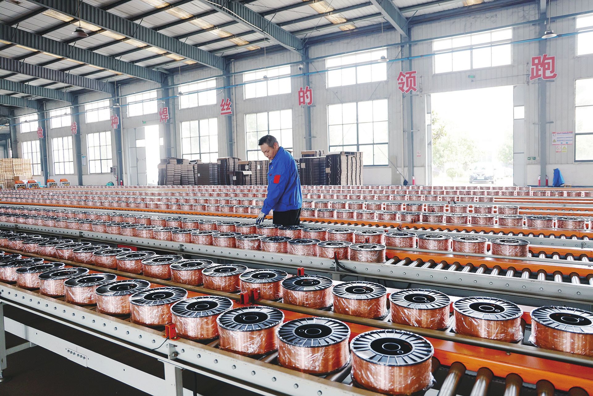 3月4日,伍家岗工业园猴王焊丝生产车间,工人们铆足干劲赶订单。目前,公司订单已经排满二季度。(记者黄翔、通讯员夏靓 摄)