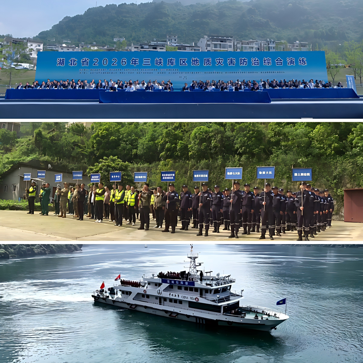 4月16日,湖北省2026年三峡库区地质灾害防治综合演练,在宜昌市夷陵区乐天溪镇莲沱村、三斗坪镇南沱村举行。这是湖北首次在三峡库区主航道开展地质灾害防治演练,也是首次聚焦“滑坡—涌浪”灾害链,将人工智能技术系统应用于地质灾害防范,旨在以实战化演练提升地质灾害防治现代化水平和全域风险防控能力。