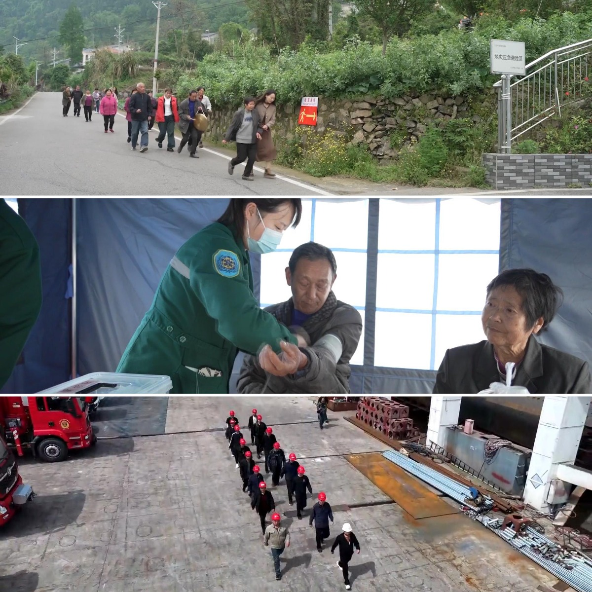 “滑坡了,快按照预定路线撤离!”当日10时,急促的铜锣声和无人机喊话同时响起。演练模拟南沱村一组滑坡隐患点变形加剧,存在整体滑塌入江、引发涌浪的风险,直接威胁沿岸群众、船厂职工及过往船舶安全。省、市、区三级迅速启动应急响应。