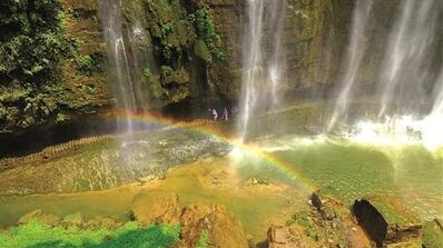 8月12日,游人在夷陵区晓峰旅游景区三峡大瀑布峡谷内文明赏景。立秋时节刚过,三峡大瀑布峡谷风景区内游人如织,游客们热情不减,秀美如画的瀑布风景吸引了各地游客来此赏景游玩,乐享山水清凉。(三峡日报 通讯员 张国荣 毛越康 摄)