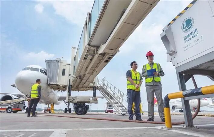 ▲宜昌三峡国际机场全面布局廊桥岸电设备,为超5500架次航班提供清洁能源。通讯员 王婷婷 摄