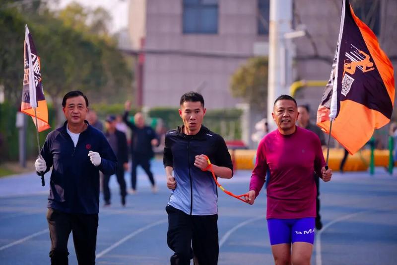 3月14日早晨7时许,市体育活动中心的跑道上,浮现出一道格外独特的风景——十几位跑者两两结对,手腕间紧紧系着一根橙黄色细绳。绳子纤细,却在清晨的柔光里,显得格外耀眼夺目。