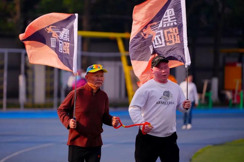 场边,黑暗跑团潜江站站长范连池正忙着招呼新来的志愿者。他望着操场上穿梭往来的一对对搭档,眼神里满是欣慰与暖意。